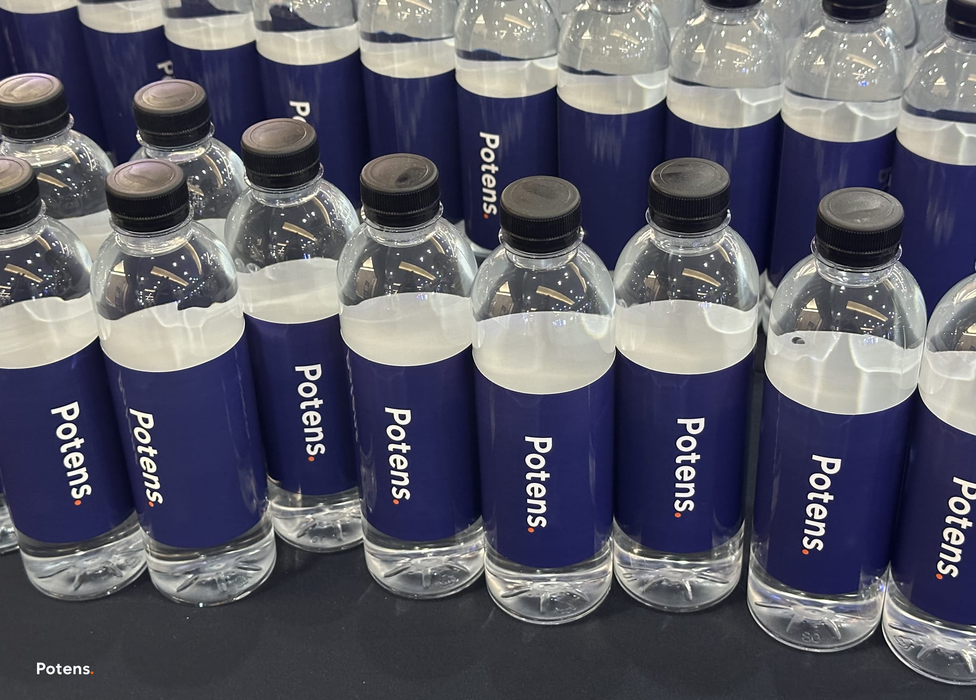 다양한 기업의 성공적인 AX 파트너로 자리매김한 저희 포텐스닷도 이번 행사에 참여했습니다. 가장 먼저, 참여하시는 분들을 위해 생수를 준비해 컨퍼런스장에 입장하시는 그 순간부터 포텐스닷을 만나보실 수 있으셨을 겁니다. 그리고, 현장 부스를 통해 더욱 풍성한 컨퍼런스 경험을 제공하고자 다양한 이벤트를 진행했습니다.