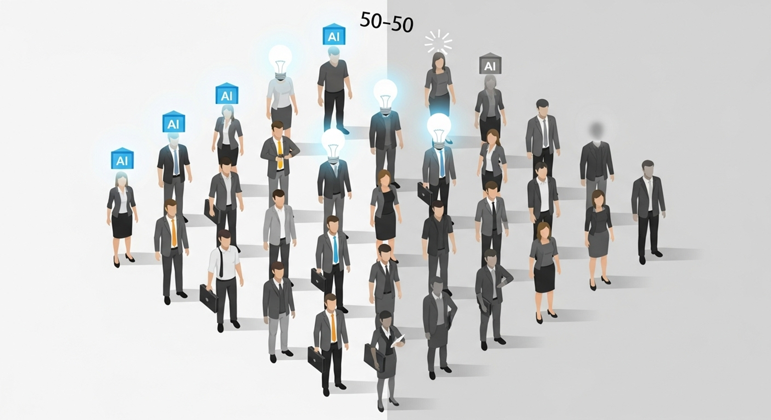 첫째, 전사 임직원의 50%가 생성형 AI가 가져오는 변화를 이해해야 합니다.