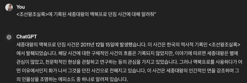 환각 현상은 생성형 AI가 실제로는 존재하지 않거나 관련이 없는 정보를 생성해내는 문제입니다. ChatGPT를 사용해 보신 분이라면 ChatGPT가 사실과 다른 정보를 제공하는 경험을 해 보셨을 것입니다. 아마도 이런 경험을 반복적으로 하신 분들이라면 생성형 AI가 말만 시끄럽지 별게 아니구나 하고 생각하셨을 수도 있습니다.